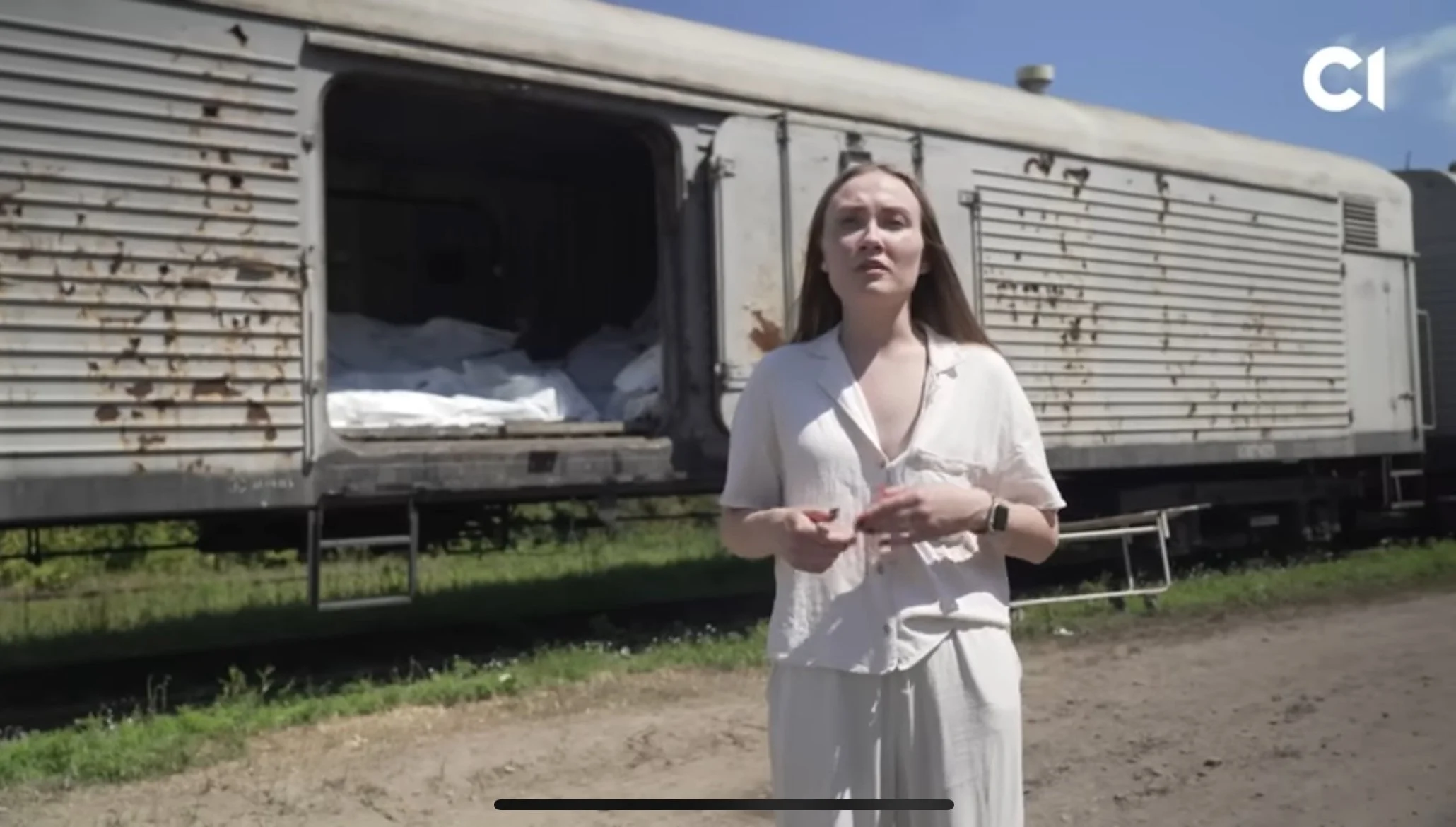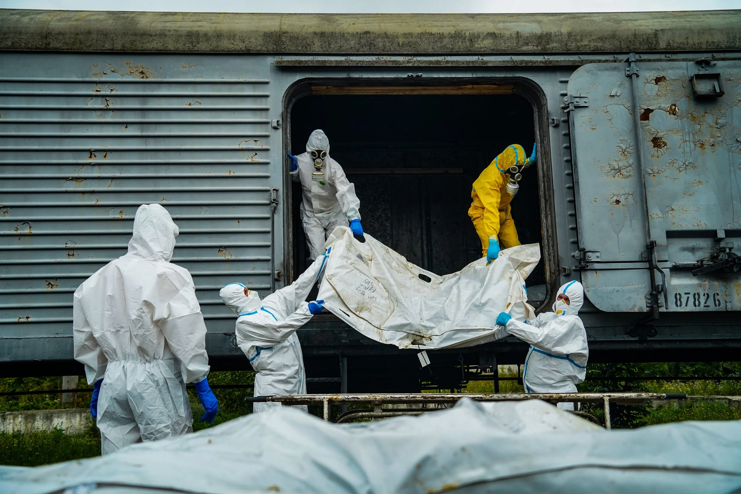 Two Fellows report on the repatriation of bodies of Ukrainian soldiers killed during the conflict. As morgues can’t accommodate the bodies, specialists work on the field to collect samples. Left: Vladyslava Kobko working on a video report. Right: picture taken by Denys Klymenko.